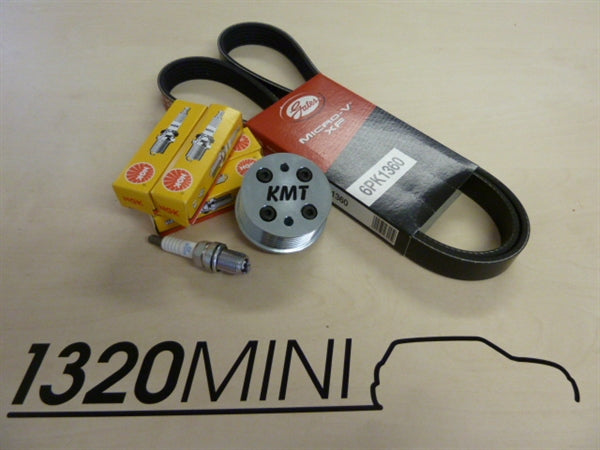If you would like the full kit of everything needed to bolt right onto your car, please click the 'Belt, and Spark Plug' tick boxes on the right of the screen and 1320 will send you the correct length belt matched for your pulley size, plus a set of colder running plugs to cope with the higher boost pressures.